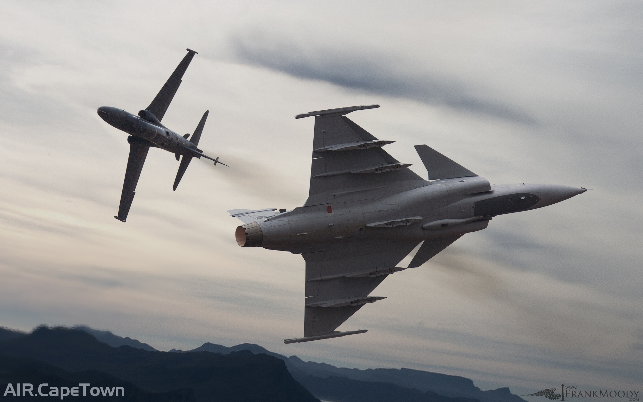 South African Airforce JAS-39D Gripen during DAC Training with Hawk Mk120
